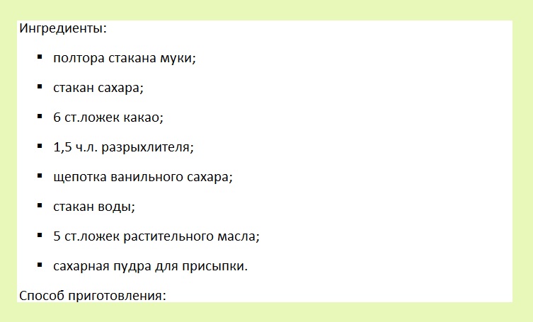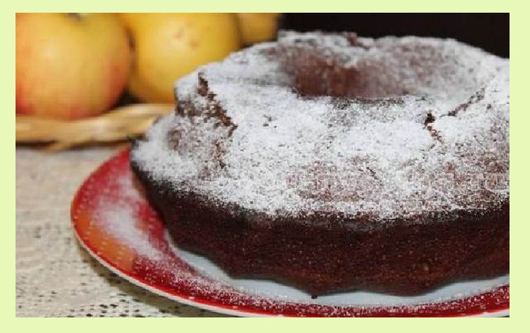 Соедините в глубокой емкости все сыпучие компоненты, кроме пудры. В теплую водичку введите масло, смешайте, добавьте в емкость с сыпучими компонентами. Тщательно смешайте. Емкость для выпекания нужно промазать, заполнить подготовленной массой. Выпекать при 180° около часа. После остывания присыпать пудрой.