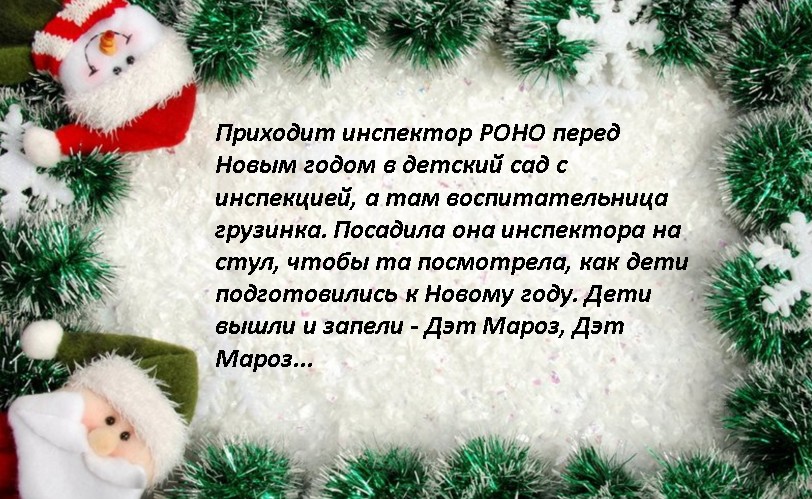 • Дедушка Мороз, в прошлый Новый год, ты к нам пришел с какой-то нетрезвой женщиной, из собачьей миски съел всю еду, мыл руки в компоте, а потом стал кричать: «Играем в снежки!» и стал кидаться голубцами. Приходи еще, мне понравилось, Миша 6 лет.
