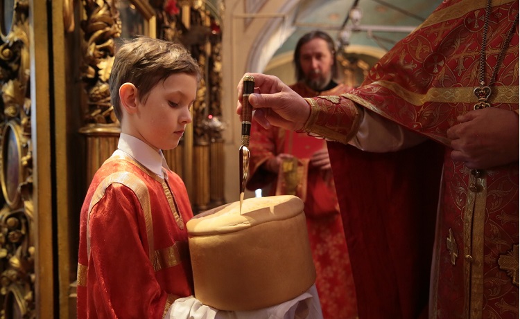 После окончания пасхальной литургии, всем присутствующим в храме раздают частички «Хлеба жизни».