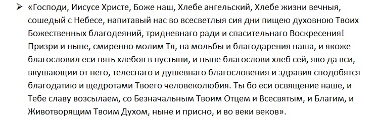 Завершив особую молитву начинается окропление хлебов. При этом читается следующая молитва: