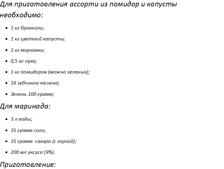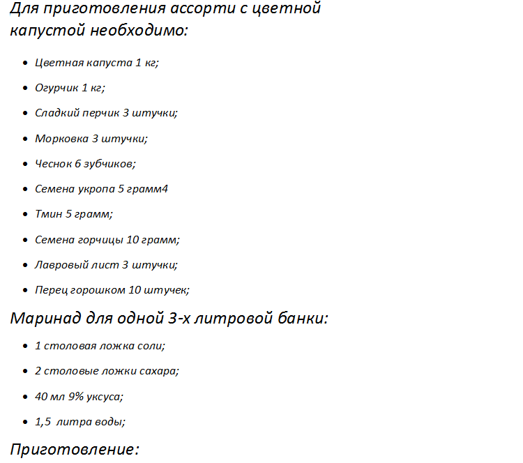 - Ассорти с цветной капустой на зиму