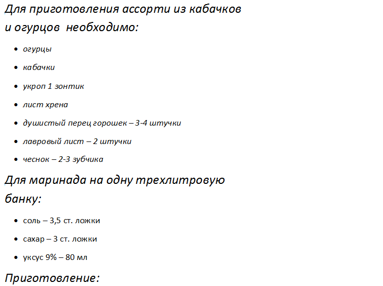 - Ассорти из кабачков и огурцов на зиму