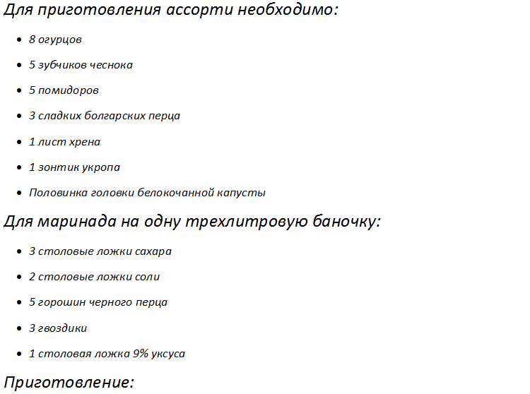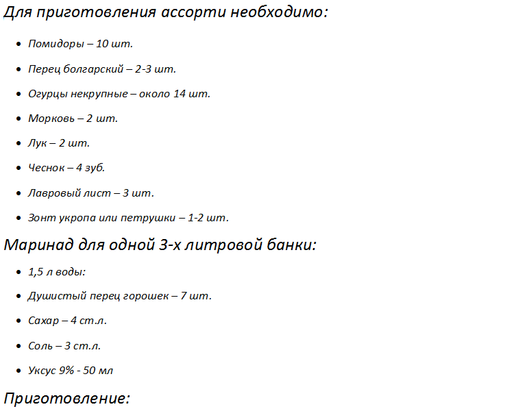 - Ассорти на зиму простой рецепт
