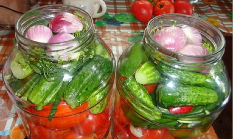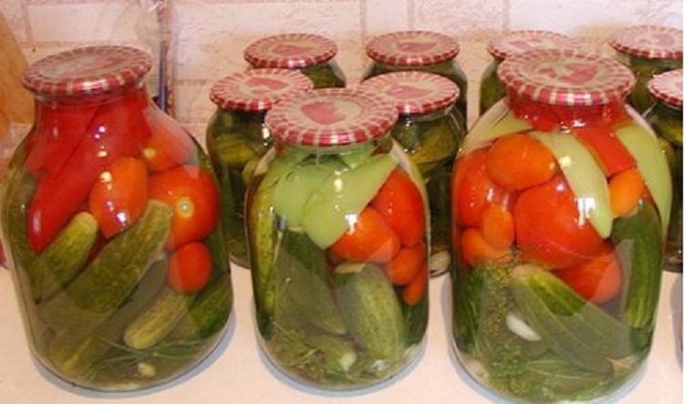 - Овощное ассорти на зиму в банке огурцы, помидоры, перец, морковь, лук