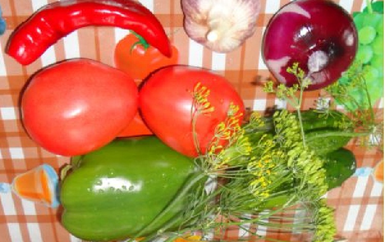 Овощи промыть, у огурчиков, помидорчиков убрать хвостики, чесночок очистить от шелухи.