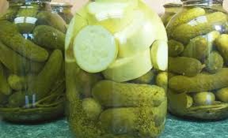 Для приготовления необходимо большее количество огурца по отношению к кабачку. Огурчик укладывать нужно снизу, он плотнее, предварительно выдержать его в воде часа два. Кабачок нежнее, его выкладываем поверху.