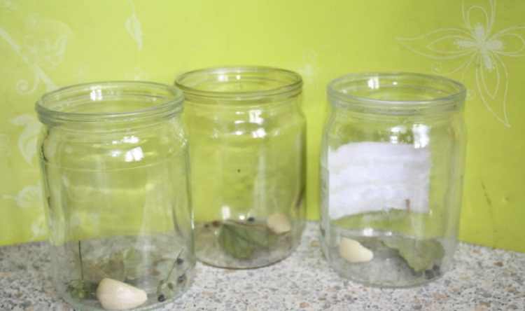Начинаем приготовление с подготовки посуды. Ее необходимо обработать паром или прожарить в печи, микроволновка — духовка, на Ваше усмотрение. Также не забываем о крышках. В остывшую посуду закладываем промытую зелень, перчик горошком, чесночок.