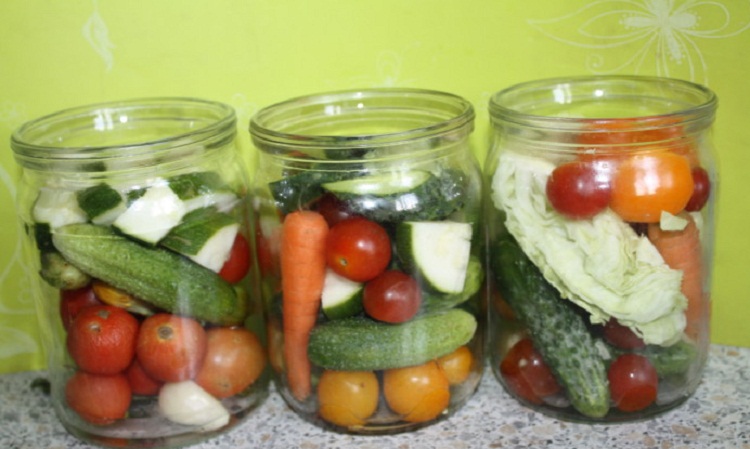 Интересным и пикантным вкусом обладают ассорти из помидор, капусты, огурцов. Каждой хозяйке под силу такая заготовка.