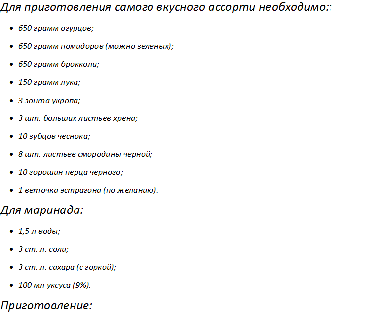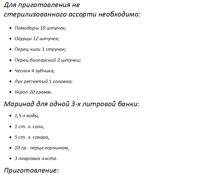 - Маринованное ассорти на зиму без стерилизации
