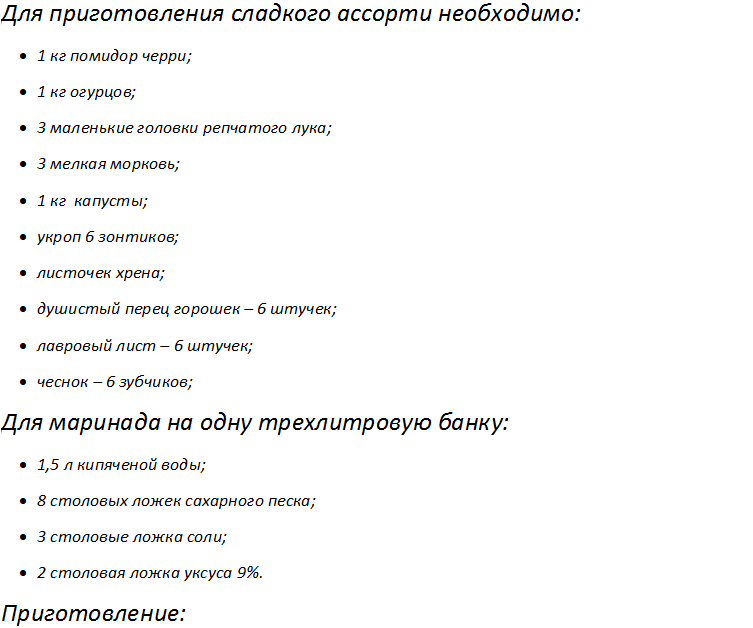 - Ассорти на зиму сладкие