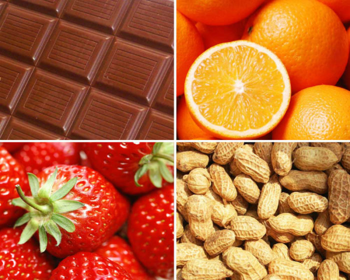 - Еда, содержащая аллергены (многие овощи и фрукты с красным и оранжевым пигментом, коровье молоко, сливочное масло, куриный желток и т.д.)