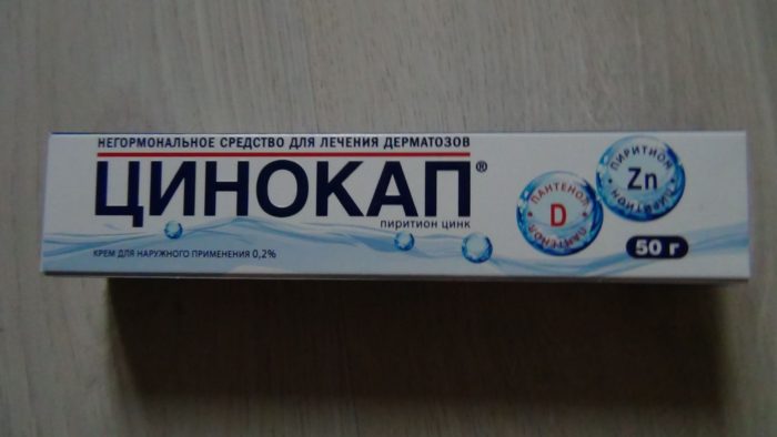 Цинокап 0,2% крем содержит пиритион цинка. Препарат эффективен при острых и хронических проявлениях атопии, особенно усугубленной инфекцией. Детям можно использовать средство после года жизни. Лекарство наносят на чистую кожу 2-3 раза в течение 3-4 недель до положительного результата.