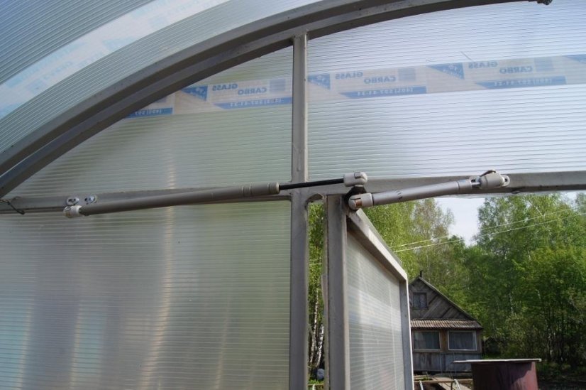 Если теплица маленькая, то примитивное устройства на базе гидроцилиндра позволит разработать автоматическую систему проветривания.