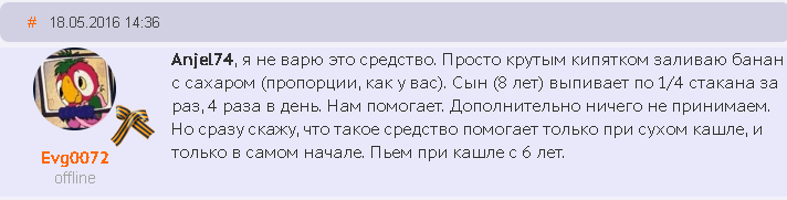 Взрослым рекомендуется принимать средства от кашля с бананом после еды, спустя 3 часа. Длительность лечения — 1 неделя. Норма бананов в день — 2 штуки.