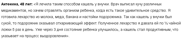 При помощи подорожника в сочетании с бананом можно бороться со скопившейся слизью. Измельчите банан, залейте кипяченым молоком (1 стакан), добавьте экстракт подорожника и ложку меда по одной столовой ложке. Данный рецепт, так же, окажет противовоспалительный эффект. Принимать следует каждые 2 часа по 30 мл.