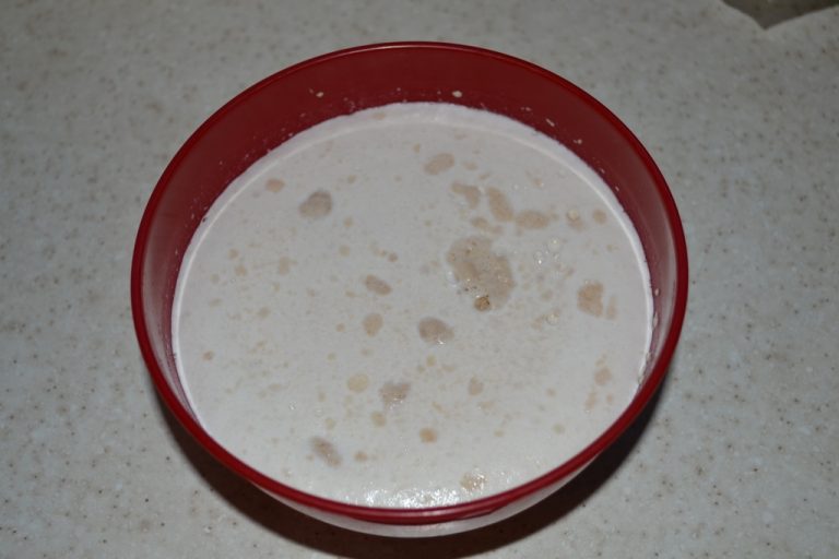 После того, как вы подготовили дрожжи, поставить миску в тепло и подождать минут 15, пока запузырится. Пока дрожжи стоят, готовим другие продукты. Подогреваем молоко, добавляем сахар — 1 столовую ложку. Размягчаем маргарин — 2 ложки столовых и перемешиваем. Через 15 минут дрожжи подошли, добавляем к ним молочную смесь.