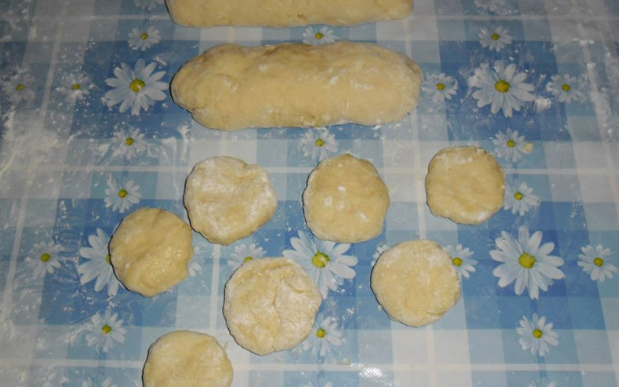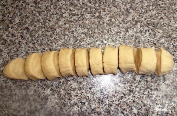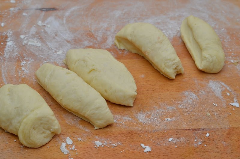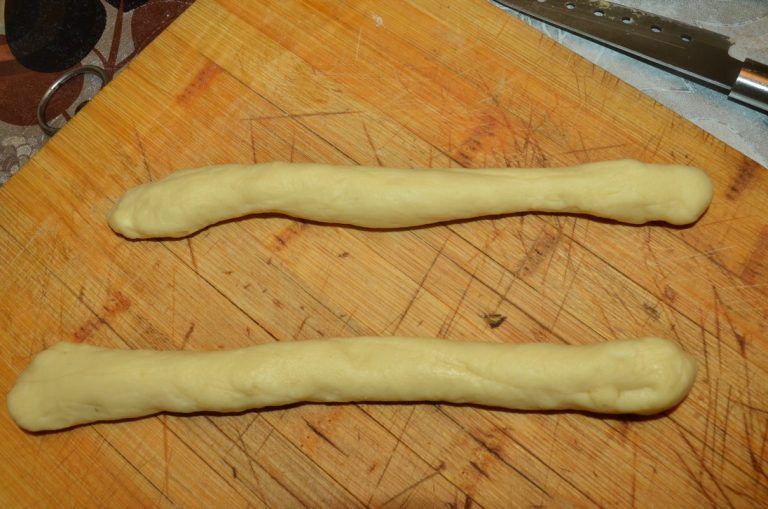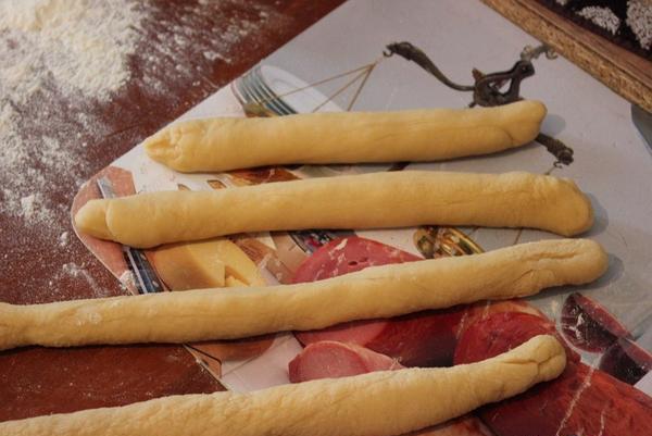 Из полученного теста начинаем формировать колбаски. Обминать больше не надо, так как не получите пышности при выпечке.