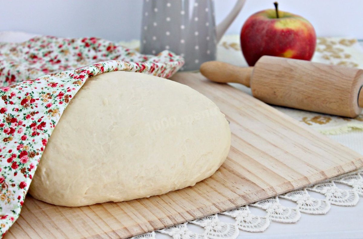 Время прошло, вымешиваем и раскатываем, толщина пласта теста — 1 сантиметр.