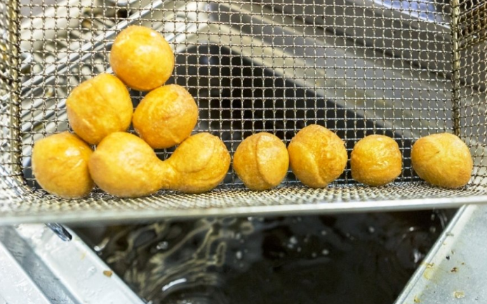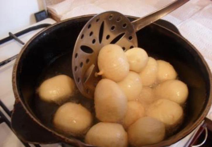 Обжаривать во фритюре, кладите небольшими порциями, чтобы не было баурсакам тесно. Одна партия жарится три минуты.