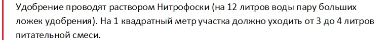 - Удобрение рассады проводится согласно регламента подкормок. Для этого используют следующий состав: