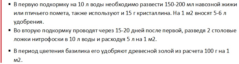 - Для быстрого роста надземной части базилика нужны частые подкормки, не менее 1 раза в месяц.