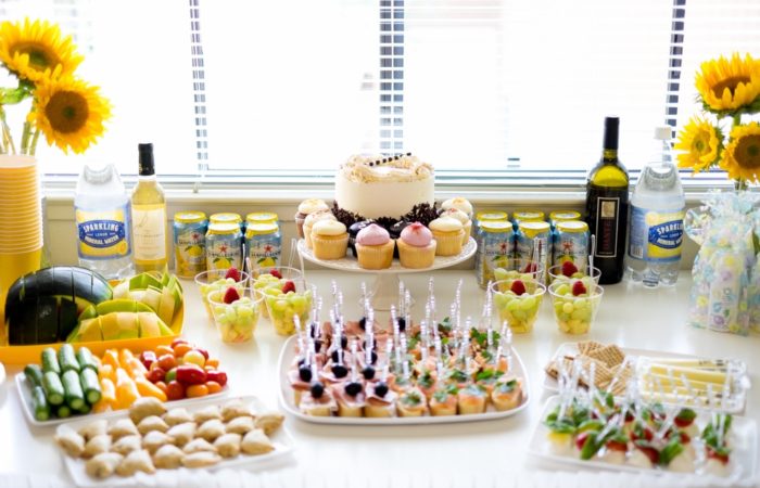 Отдельно нужно продумать меню для праздника. Обычно прибегают к фуршету: готовят фруктовую нарезку, легкие закуски, сладости.