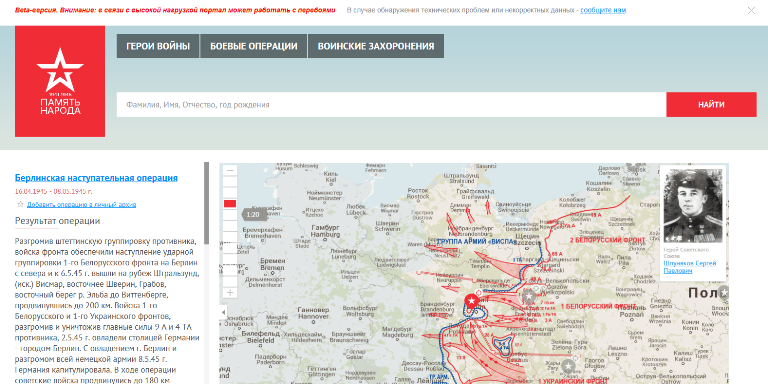 https://pamyat-naroda.ru – «Память народа». Осуществляет розыск участников ВОВ и сбор информации о них. Не огорчайтесь, если нужной фамилии не найдется в списке. Работа по пополнению списков идет, поэтому подайте заявку еще раз, позднее.