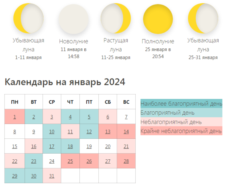 благоприятные и неблагоприятные дни лунного календаря: январь 2024