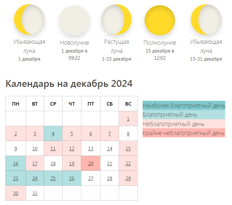 лунный календарь декабрь 2024 благоприятных дней отказа от курения