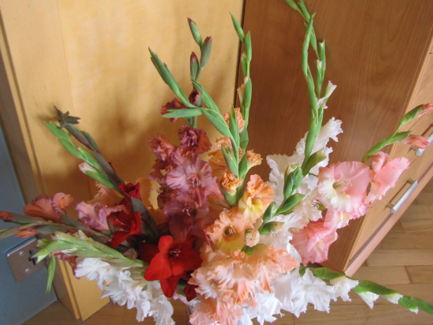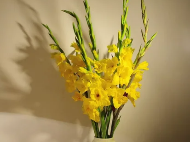 При выборе букета из гладиолусов в магазине, обратите внимание на бутоны. Выбирайте только те, у которых верхние цветы не раскрыты. С полностью распустившимися бутонами ваши гладиолусы быстро завянут.