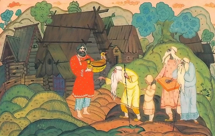 Но, однажды, произошло чудо, к нему в дом постучались старцы и попросили Илью подать воды. Илья ответил, что не может этого сделать, так как не владеет ни руками ни ногами. Старцы настояли, и будущий герой встал с кровати. Волхвы не зря пришли к нему в дом, так как ими было сказано, чтобы Илья собирался в дорогу для совершения ратных подвигов.