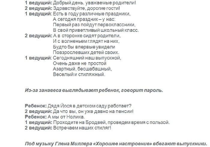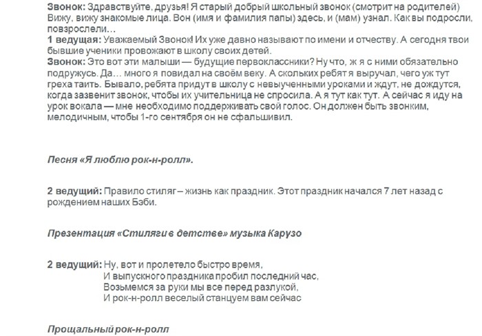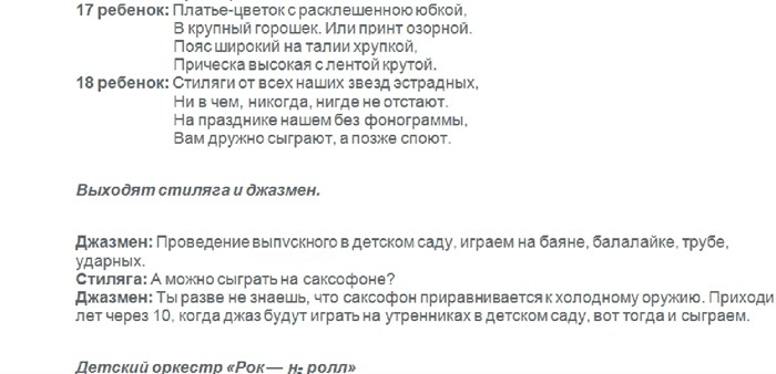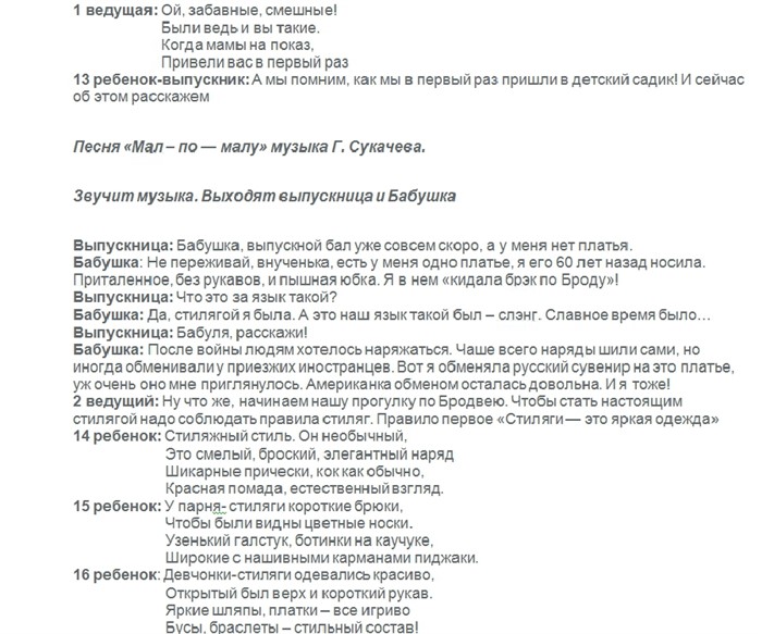 - Сценарий интересного выпускного в детском саду: детский сценарий стиляги