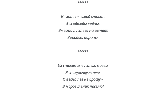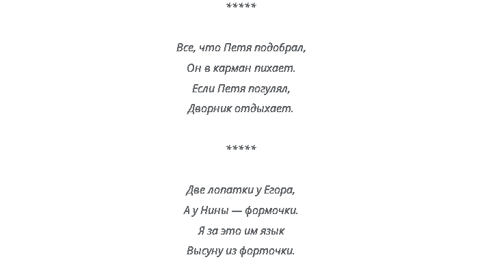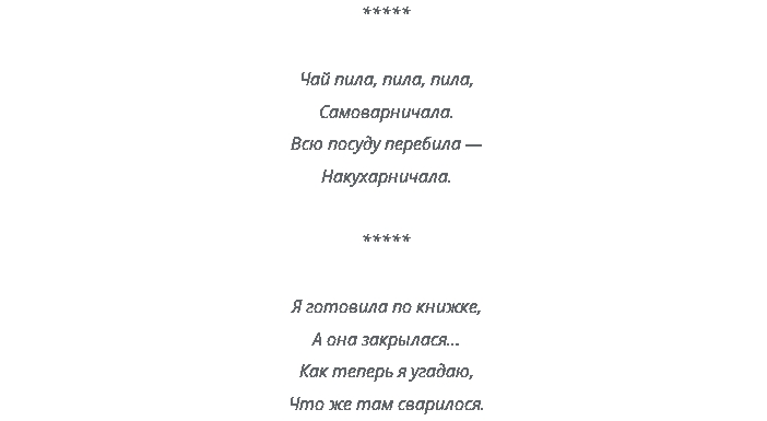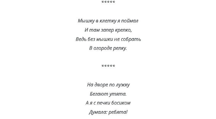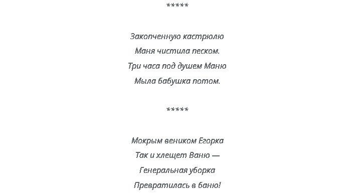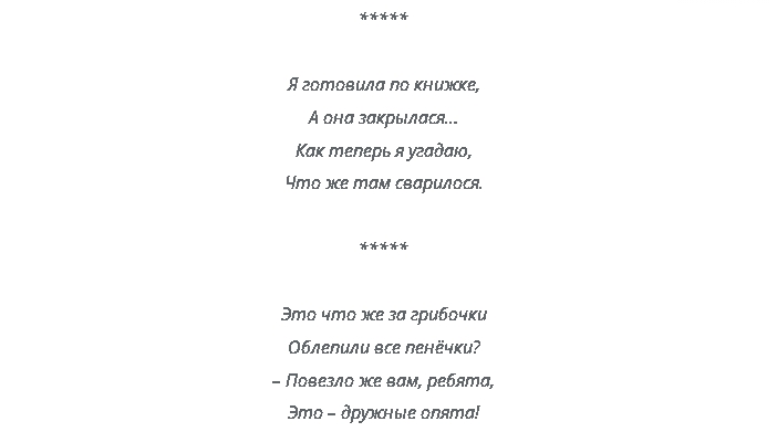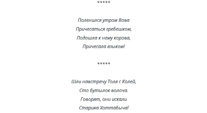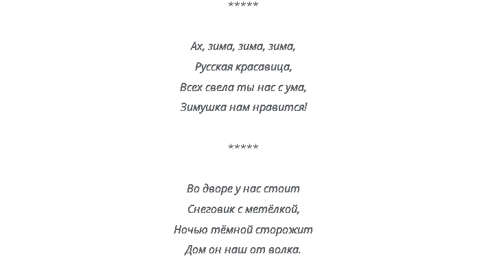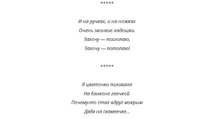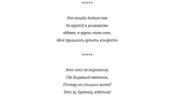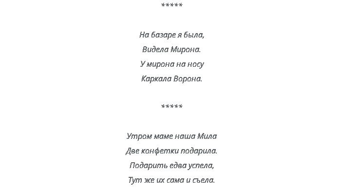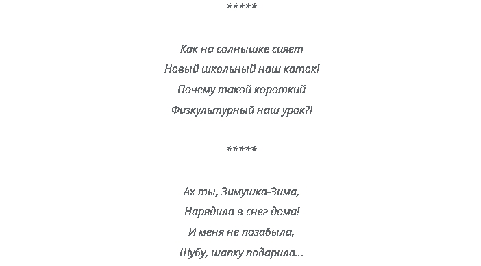 В этом разделе мы собрали частушки самой разной тематики. Разучите их заранее с детьми, чтобы организовать представление в любое время.