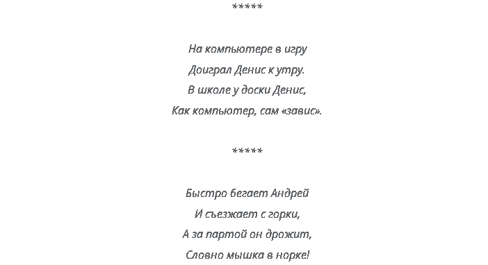 В детских садах и начальных классах общеобразовательных школ не редко используют частушки для организации различных праздников. Детям запомнить короткие стихи, состоящие из четырех фраз, достаточно легко и они с удовольствием их исполняют под характерную музыку. Для мероприятия специально подбираются костюмы в соответствии с тематикой, каждый ребенок представляет определенный образ. Чтобы было интереснее можно устроить конкурс, в котором примет участие вся группа детского сада или весь класс. В нашей статье мы подобрали частушки, в которых с юмором и сарказмом рассказывается о современной жизни детей.