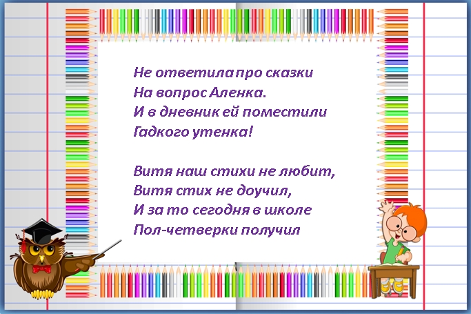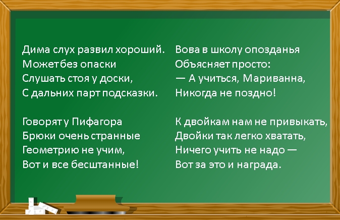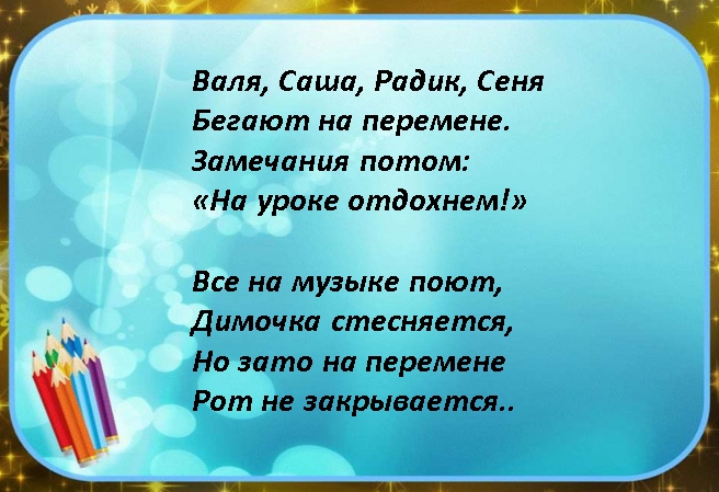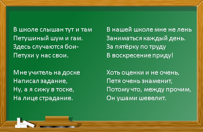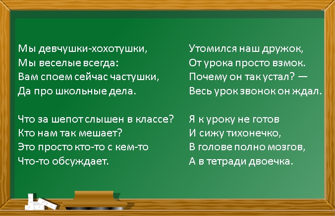 В школьной жизни всегда найдется место юмору. Готовясь к выступлению, дети с удовольствием разучивают короткие стишки и поют их под аккомпанемент. Задача родителей, помочь с выбором частушек, которые будут отображать повседневную жизнь ребят.