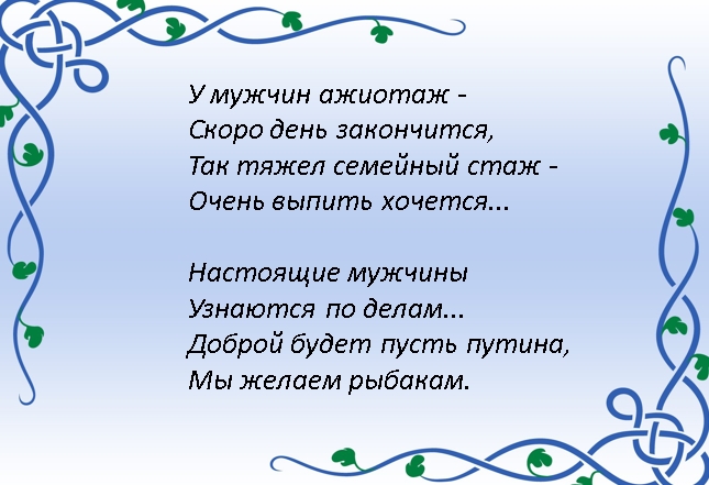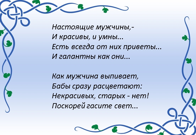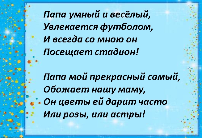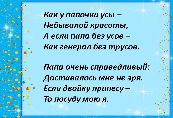 Пап тоже без внимания оставить нельзя. Пропеть им частушки можно на День рождения, 23 февраля и другие праздники, которых у нас достаточно много.