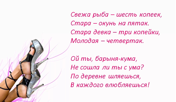P.S. На этом наша подборка веселых, прикольных и задорных частушек закончилась. Мы постарались подобрать для вас наиболее интересные варианты. Надеемся, что они вам пригодятся, ведь обязательно найдется повод, чтобы их спеть.