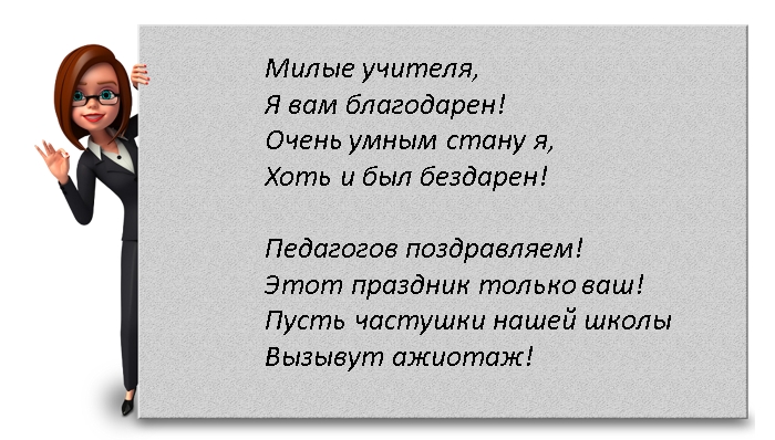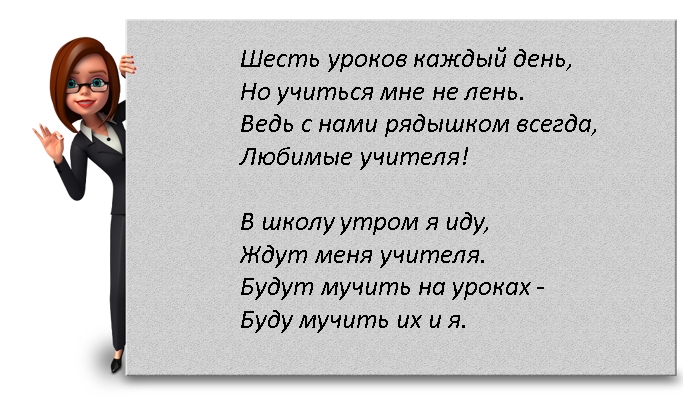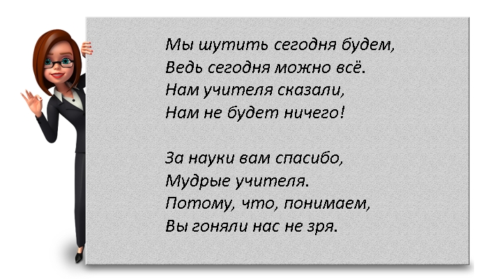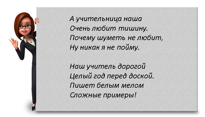 Подготавливая концертную программу, например, к Дню учителя, ребята разучивают не только стихи и песни, но и смешные частушки про своих любимых учителей. Обязательно дайте детям возможность их исполнить, без всякого сомнения они понравятся всем преподавателям.