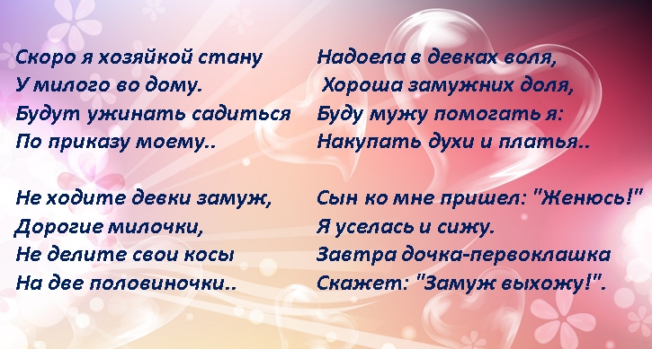 На детских увеселительных мероприятиях, которые посвящены женским праздникам или другим событиям, всегда найдется место исполнителям частушек. В данном разделе их героинями являются девочки.
