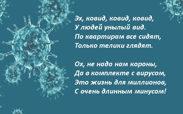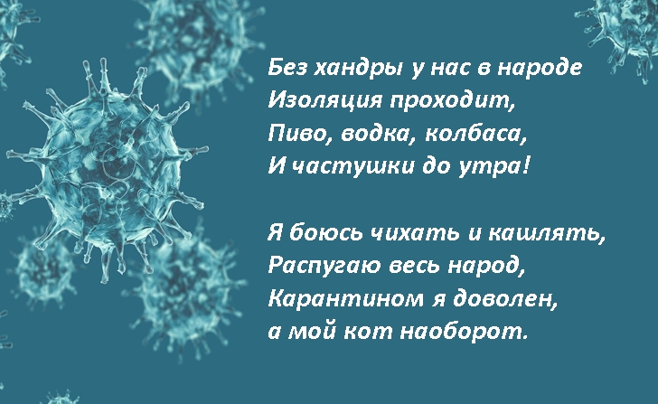 Не так давно весь мир пережил жуткую пандемию, все сидели по домам, носили маски и очень боялись заразиться. Но и здесь у многих проявляется чувство юмора, сочинители частушек четко подмечают все аспекты жизни людей в этот непростой период.