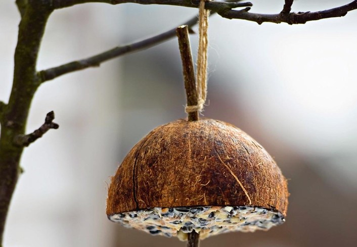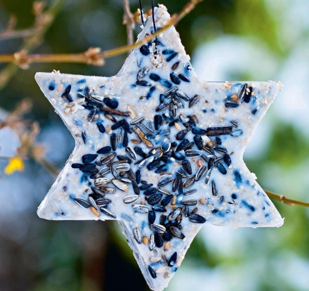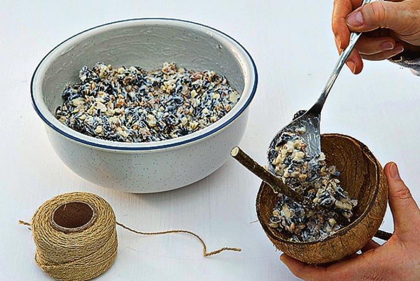 - Сало и мясо подвешивают за веревку к ветке, только без соли. Это лакомство любят поползни, синицы и некоторые другие виды птиц.