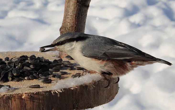 - Семена подсолнуха — универсальный корм, его едят с удовольствием разные птицы. В их составе полезные растительные жиры, которые в холода являются ценным источником энергии.