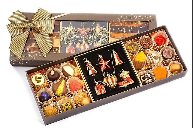 - Любительницу сладостей порадуйте коробкой шоколада. Богатый традиционный вкус, фрукты, орехи и фисташки, что еще нужно для праздника.