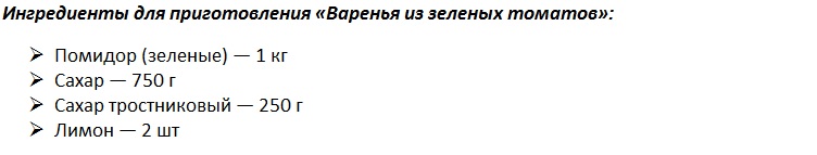 Родина томатного варенья-Италия. Из зеленого томата получается отменное варенье, и даже джем. Такое лакомство используется не только к чаю, но и в выпечке.
