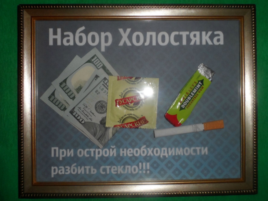 - Набор холостяка. Подарок с намеком, мол, хватит ходить уже холостым. Вручите и посмотрите на его реакцию.