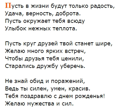 Иногда вместо подарка достаточно красивого пожелания, исходящего от сердца. Выразите его в стихах при встрече, письменном обращение или отправьте его по смс.