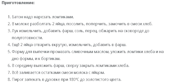 Отличная пирог получается из черствого хлеба, если у вас осталось половина батона, ингредиенты уменьшите в два раза. В качестве начинки можно использовать любой фарш — мясной или куриный.