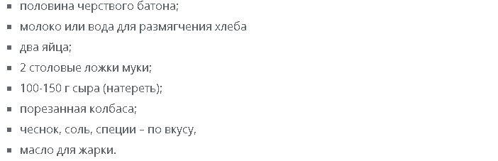 2. Кусочки отжать, добавить яйца, мелко порезанную колбасу, сыр, соль, чеснок, специи.