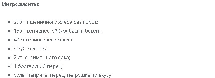Если у вас осталось 250 грамм хлеба, вам потребуется: