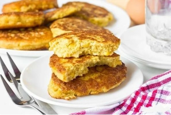 Черствый белый хлеб вполне подойдет, как основа для оладий. В тесто можно добавлять орехи, изюм, яблоки.